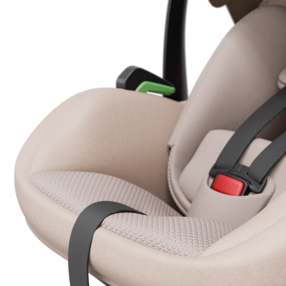 Everyday use is simple thanks to a streamlined harness with a single pass-through slot and a new guide design, allowing the seat to fit securely on any car seat. The handle can be used in any position, upright or folded, giving you full flexibility and easy access to your baby.