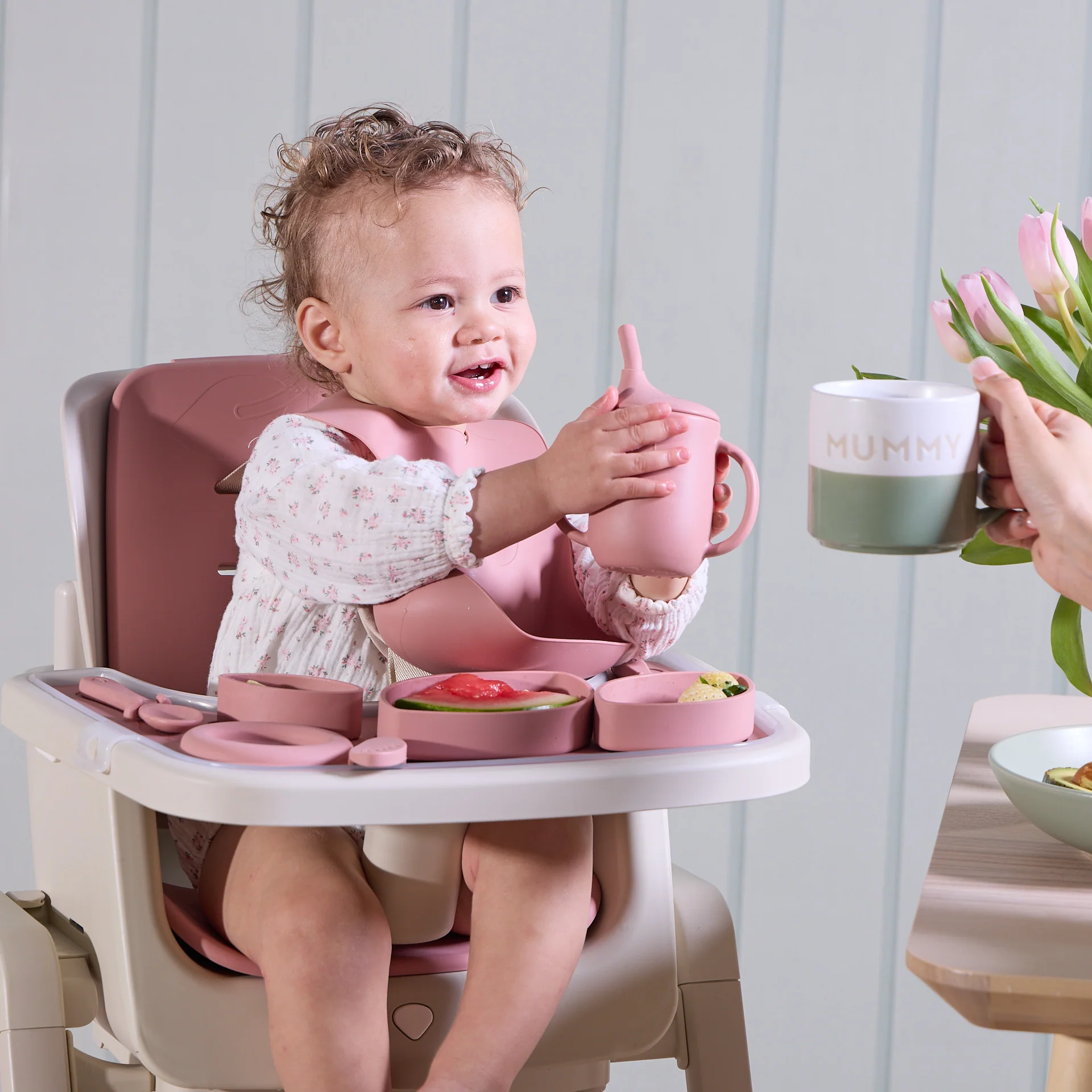 Easy to care for and made for modern family life, all silicone items can be washed by hand or in the dishwasher and are microwave safe. Available in six coordinated colours, the accessory pack pairs beautifully with your Nova Maison highchair for a cohesive look at the table.