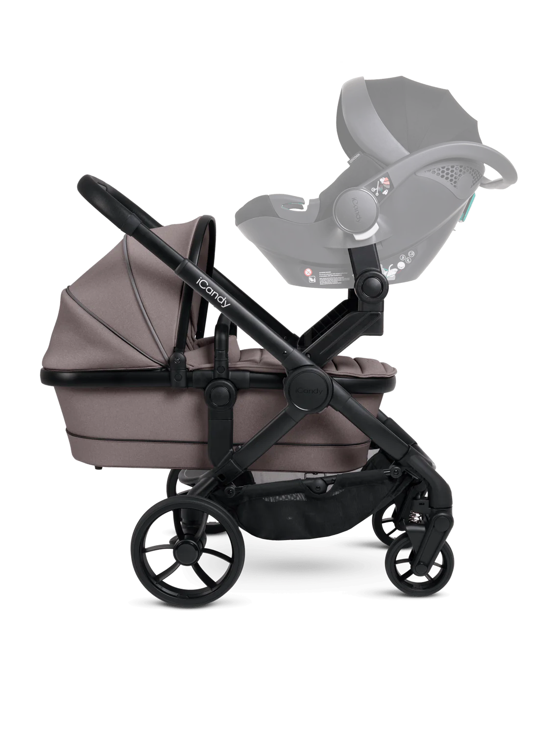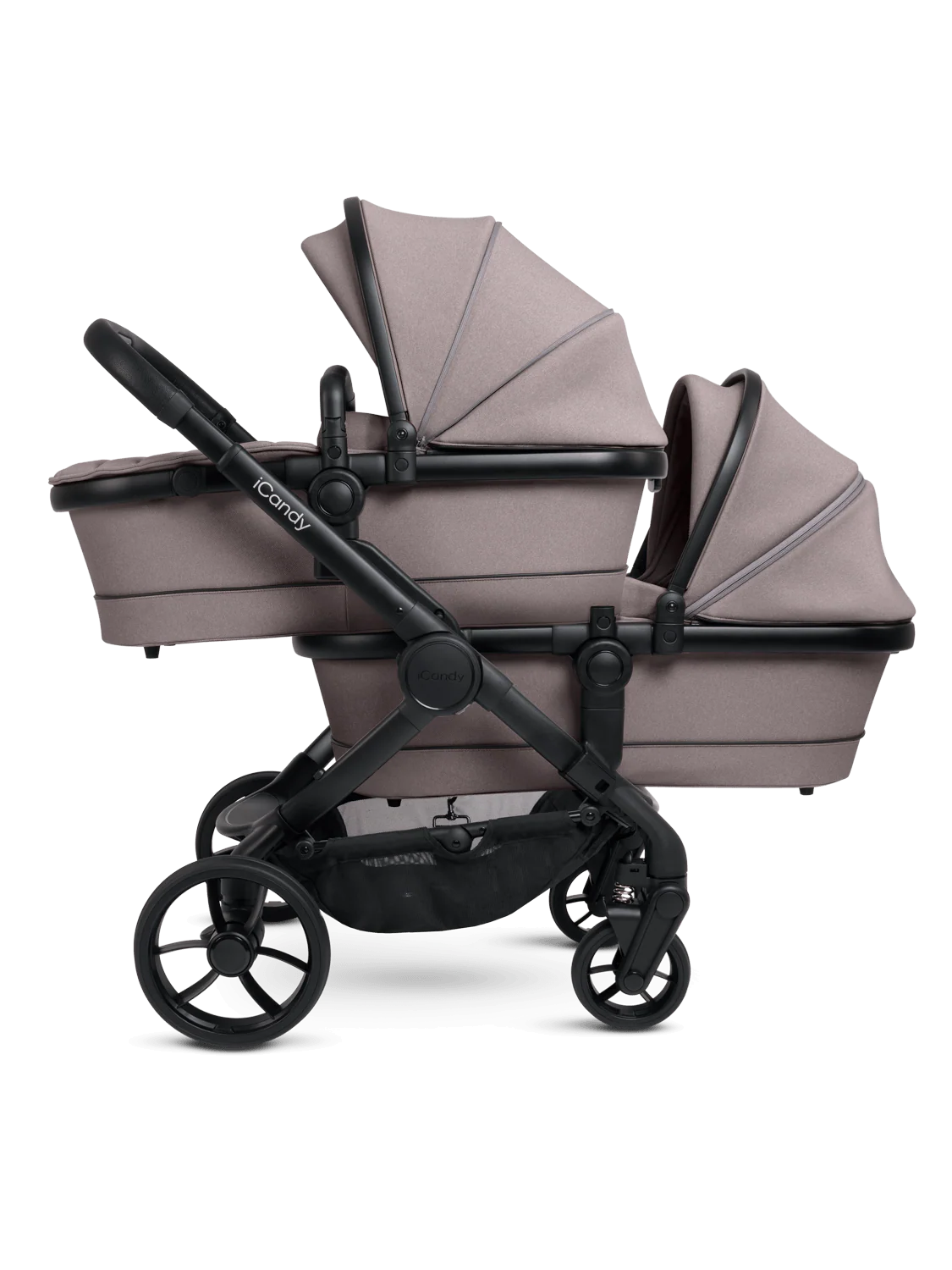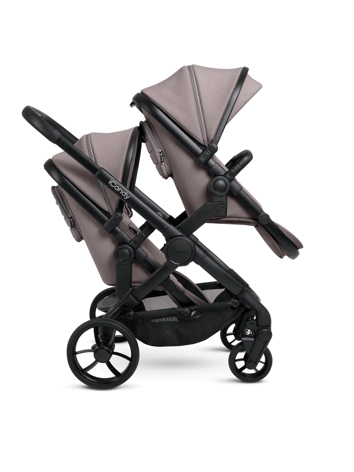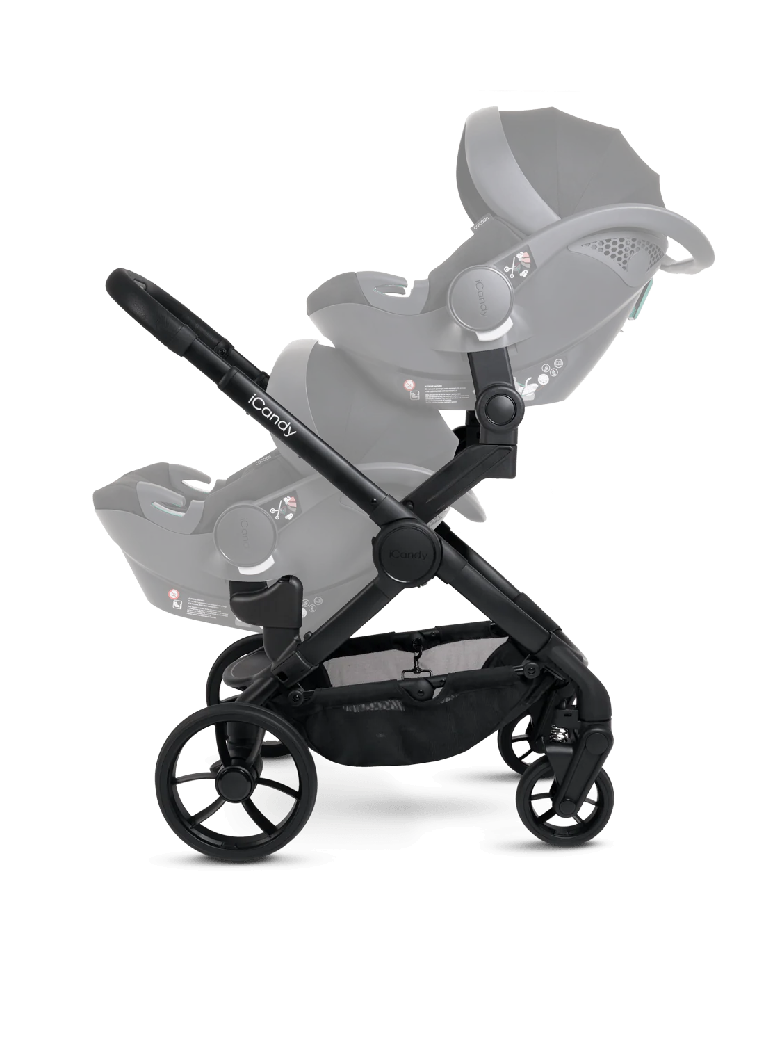 Now in its seventh generation, every element of the iCandy Peach has been crafted to ensure perfection in functionality, quality and safety and is the choice of parents who demand cutting edge design and style that lasts. Famous for its one-handed fold, incorporated carry strap and fashion forward fabrics, the Peach can easily convert into a twin or double pushchair with the use of innovative adaptors.