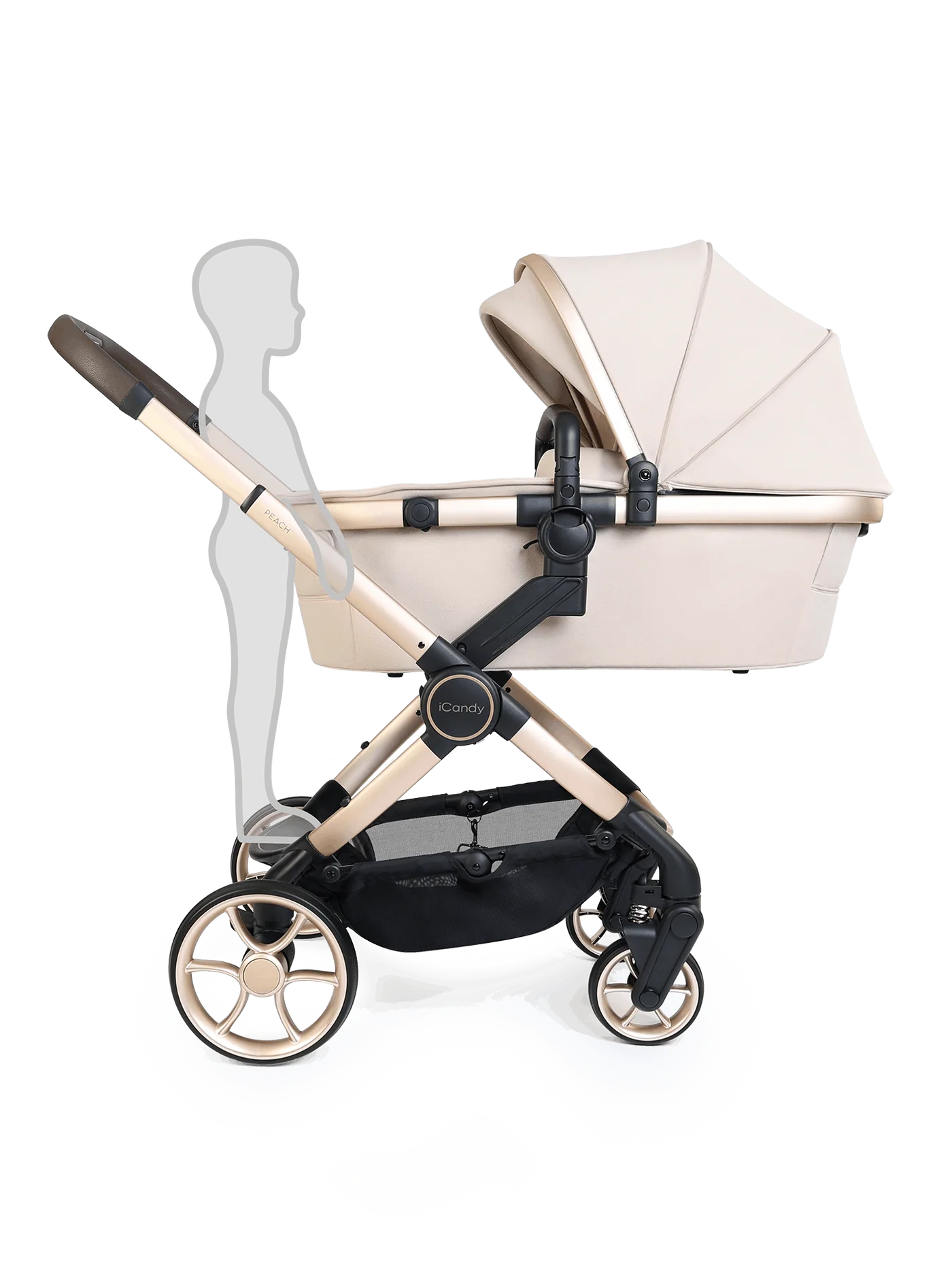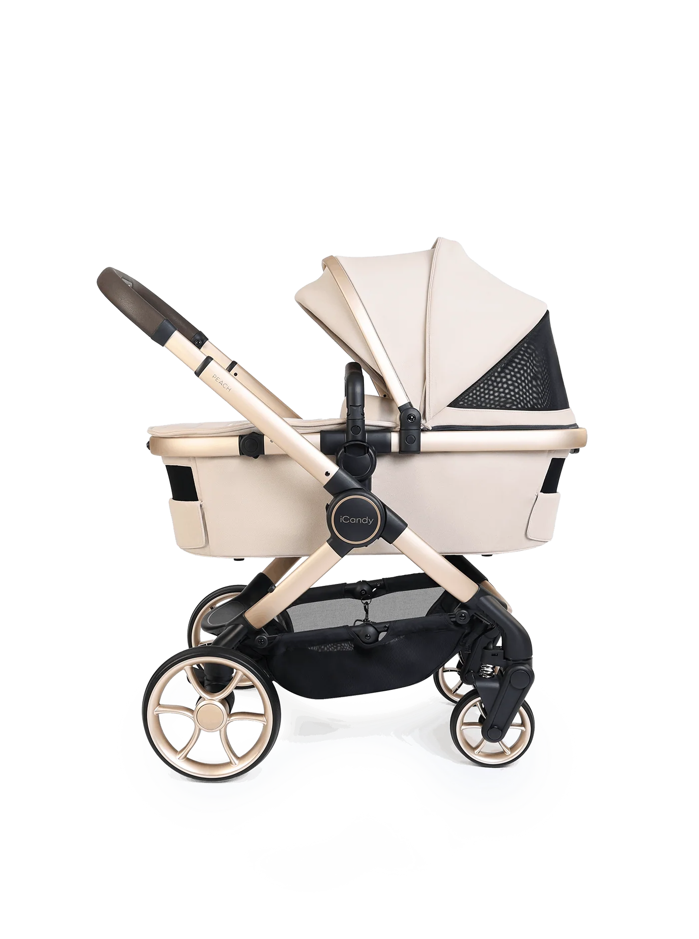 The spacious, collapsible Peach 8 carrycot has been redesigned to provide increased airflow and is approved by The Lullaby Trust for permanent overnight sleeping, including when used with the compatible iCandy MiStand. Advanced suspension, puncture-proof tyres, an extendable canopy with UPF protection, ergonomic one-hand release system, flip-flop friendly brake and integrated Ride-on Board ensure a smooth, comfortable ride across all terrains.
