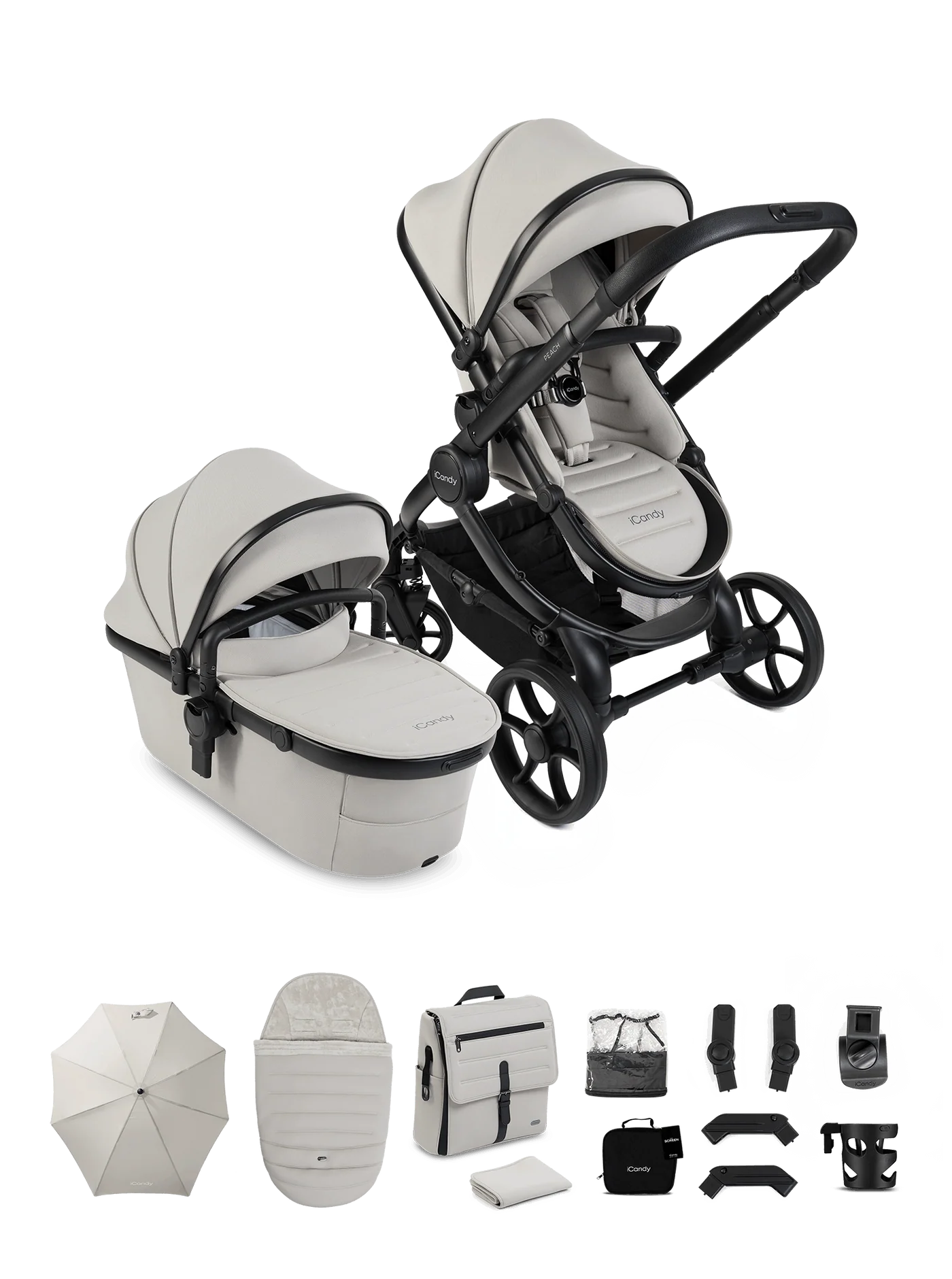 The iCandy Peach 8 Complete Bundle is a beautifully engineered, luxury pushchair and travel system compatible solution, designed to support your baby from birth while fitting seamlessly into modern family life. Combining iCandy’s latest pushchair innovation with effortless everyday functionality, this premium pushchair delivers exceptional comfort, versatility and style for parents who expect more.