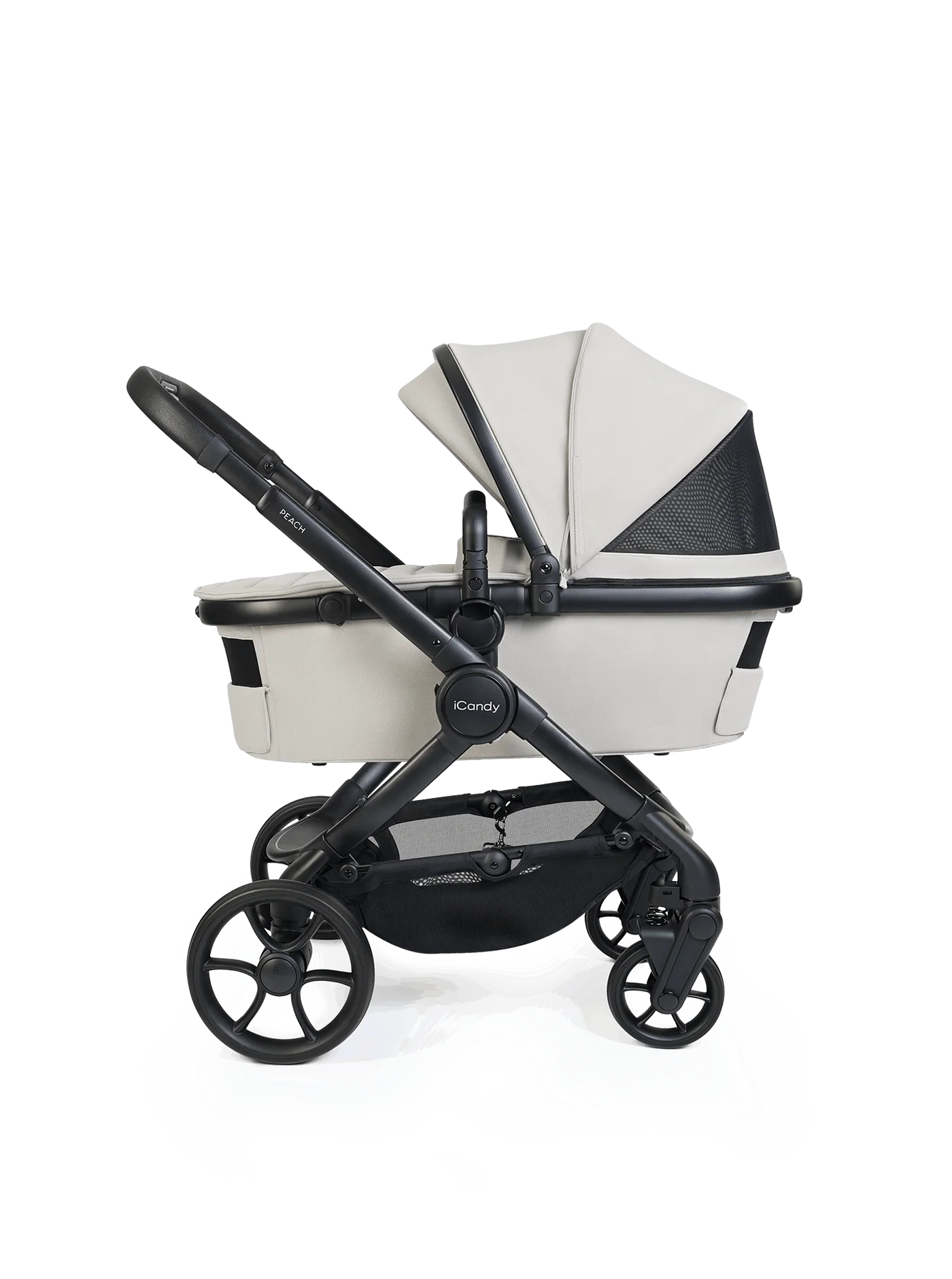The spacious, collapsible Peach 8 carrycot has been redesigned to provide increased airflow and is approved by The Lullaby Trust for permanent overnight sleeping, including when used with the compatible iCandy MiStand. Advanced suspension, puncture-proof tyres, an extendable canopy with UPF protection, ergonomic one-hand release system, flip-flop friendly brake and integrated Ride-on Board ensure a smooth, comfortable ride across all terrains.